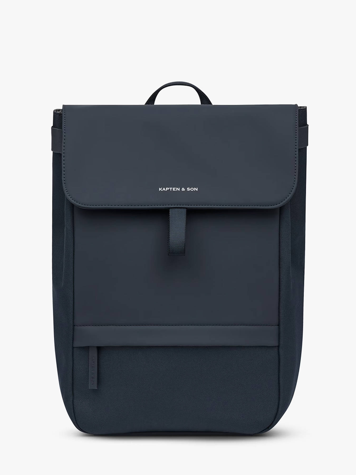 The KAPTEN AND SON backpack in recycled P.E.T combines modern design, durability, and optimal organization. Its flap and velcro closure secures your belongings while allowing quick access. Outside, it features one front pocket and two back pockets for additional storage. Adjustable shoulder straps and a support loop for telescopic handles provide maximum comfort, whether worn on the back or carried by hand. Inside, a slip pocket, a zip pocket, a laptop compartment for up to 15.6’’ devices, and a special tablet compartment allow safe transport of your digital equipment. This backpack can hold A4 folders, notebooks, and binders of various sizes, making it perfect for work, school, or urban commuting. Durable, eco-friendly, and functional, it combines practicality with contemporary style for an organized and stylish daily use.