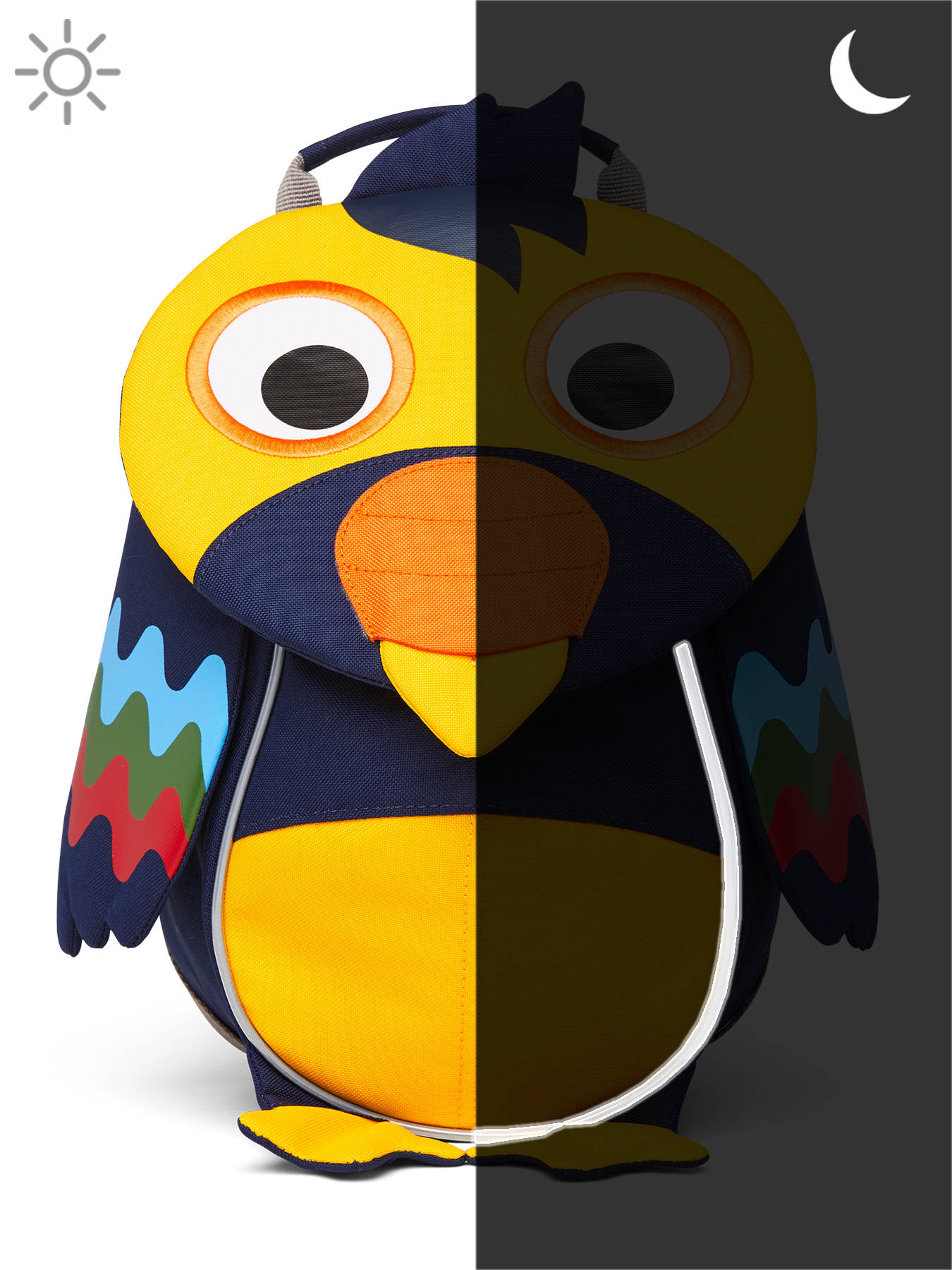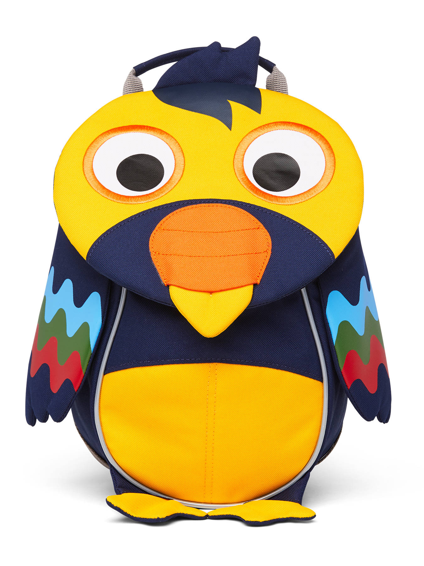 Large Friends backpack by Affenzahn. You'll love its originality and practicality. This backpack is meticulously crafted, with handmade embroidery. The tabs are made of hook-and-loop fasteners, so your child can play hide-and-seek by fastening the tabs over his eyes. When you pull on the tongue, you'll find a hidden strip for writing your child's name. The front pocket is stretchable, and the outside mesh pockets can hold a water bottle, for example. Even at the end of the day, your child will be able to find his bag thanks to its reflectors. Soft and supple, the shoulder straps are covered in velvet for maximum comfort. A backpack 100% adapted for little ones!