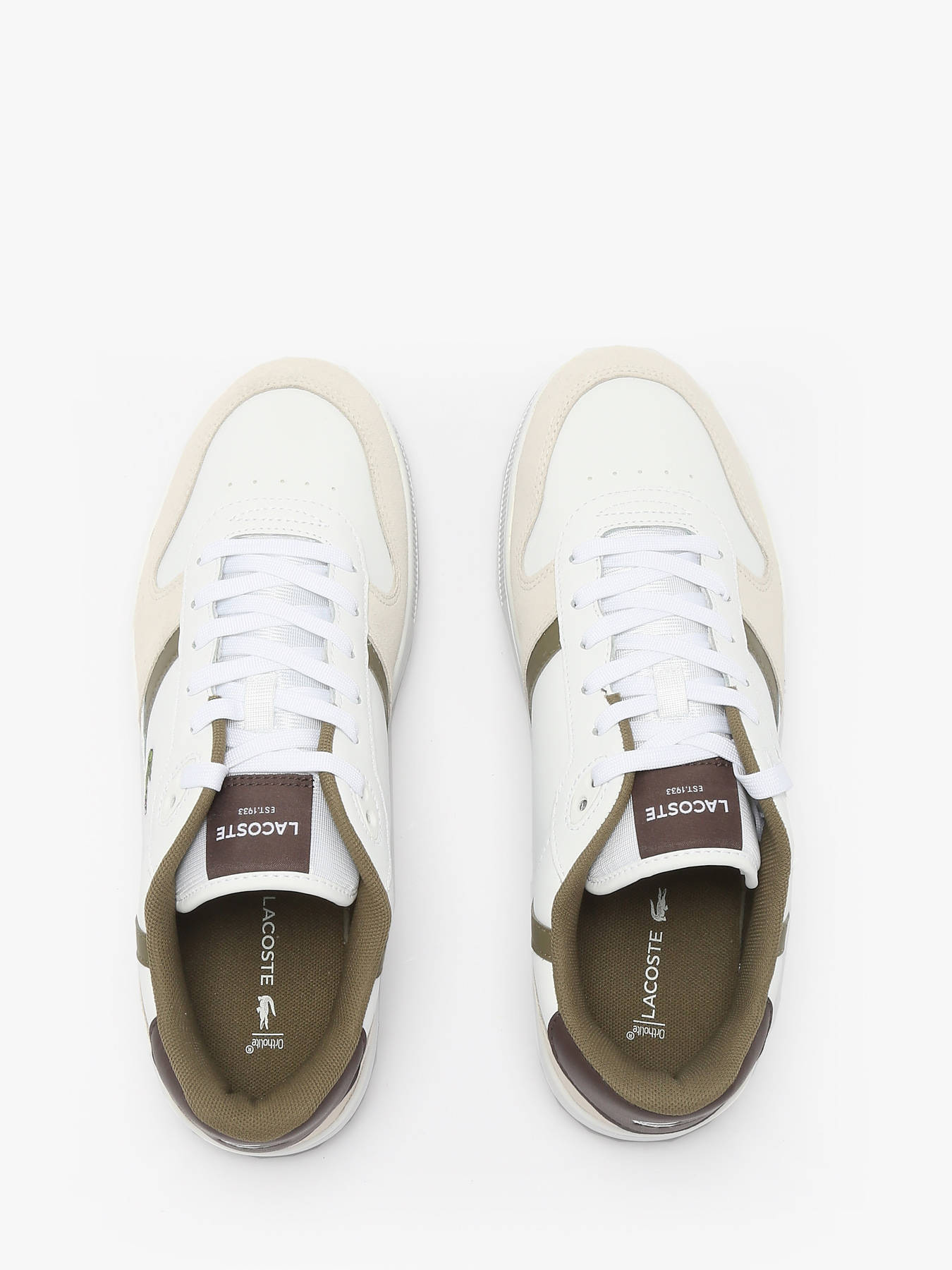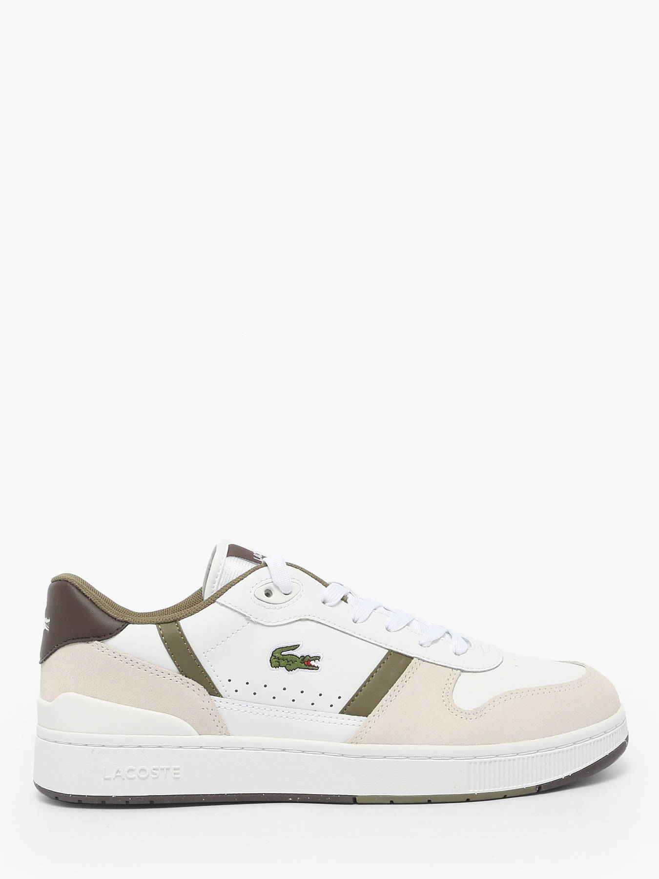 The LACOSTE T-Clip Set sneakers stylishly reinterpret 1980s tennis codes. Their white leather upper is enhanced with khaki suede panels and refined vintage finishes for an authentic retro look. The embossed central crocodile embodies the brand’s signature elegance. Combining comfort, quality, and style, these sneakers strike the perfect balance between sporty spirit and urban sophistication. An iconic model to wear every day.