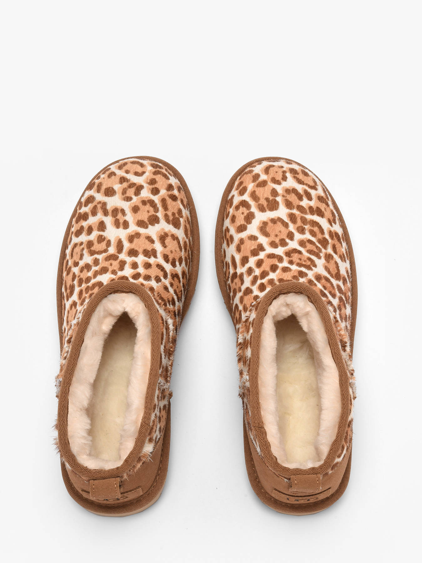Add a bold touch to your outfits with the CLASSIC ULTRA MINI PLAINS ankle boots from the brand UGG, enhanced by a modern and trendy leopard pattern. Their cowhide shaft combined with a leather upper blends style, durability, and elegance. The fur lining and leather insole provide exceptional comfort and pleasant warmth throughout the day. Easy to slip on thanks to their practical design, these UGG ankle boots are perfect for casual or chic looks, adding an original and contemporary touch to your wardrobe. Elegant, comfortable, and stylish, they embody the perfect balance of trendiness, quality, and the brand’s iconic craftsmanship.