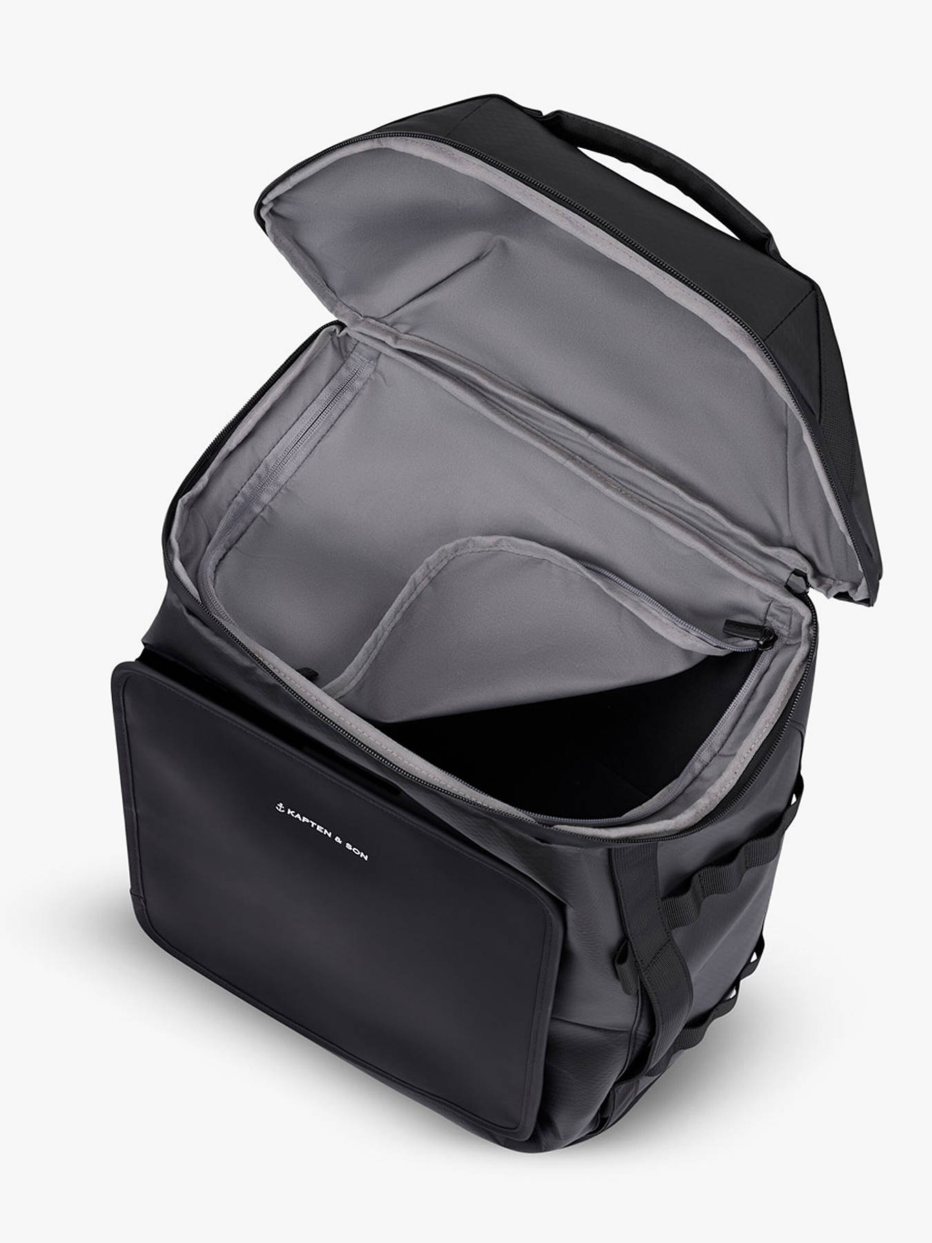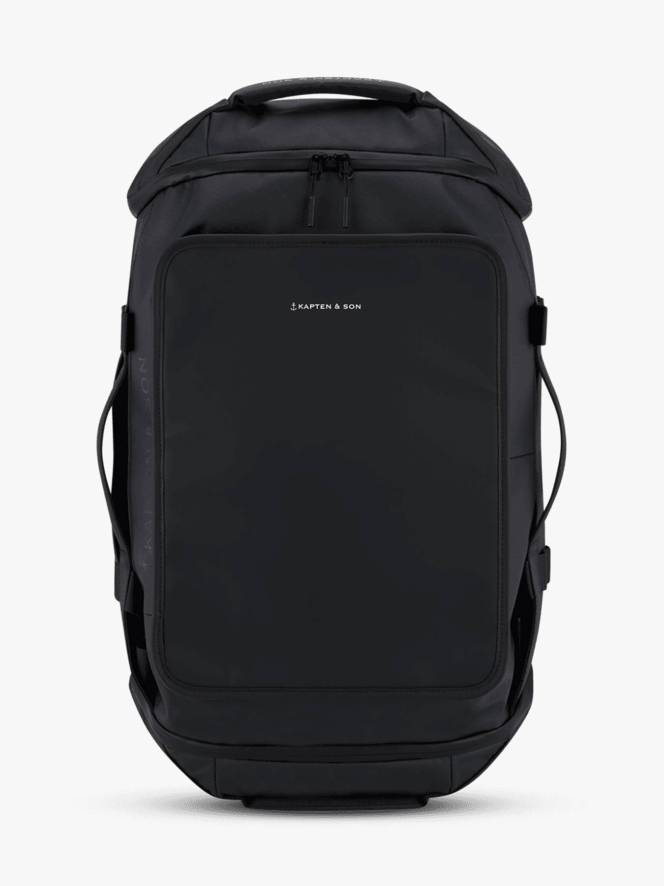 The KAPTEN AND SON cabin travel backpack in recycled P.E.T combines modern style, durability, and functionality. Designed for weekend trips, it features two interior compartments and one zip pocket, providing organized storage for clothing, accessories, and documents. Outside, two side pockets and a back pocket allow quick access to essentials. The top handle makes it easy to carry by hand, while the backpack design ensures comfortable shoulder wear. Lightweight and durable, it is perfect for short trips or urban commuting. Eco-friendly, stylish, and practical, this bag reflects KAPTEN AND SON craftsmanship, blending aesthetics, comfort, and sturdiness. Compact, versatile, and functional, it becomes the ideal companion for traveling in style while keeping your belongings organized.
