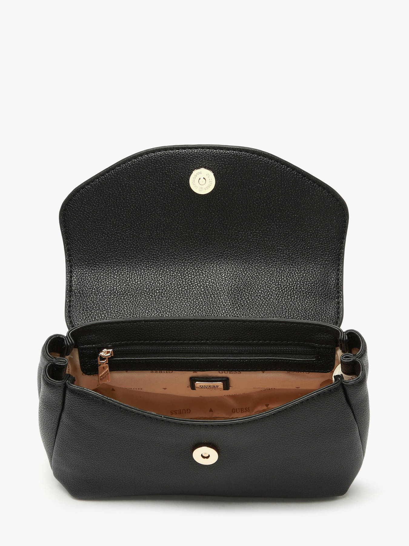 The EVIE GUESS handheld bag, made of P.U., combines elegance and practicality. The exterior features a flap with a magnetic closure for easy and secure access. It includes a back pocket, perfect for keeping essentials within reach. The handle height is 4 cm, ideal for stylish handheld carrying, while the adjustable and removable shoulder strap allows for crossbody wear as desired. Inside, the bag offers a single compartment with two simple pockets and one zippered pocket, enabling organized storage of your personal items. The EVIE is a versatile and chic accessory, perfect to complement all your outfits.