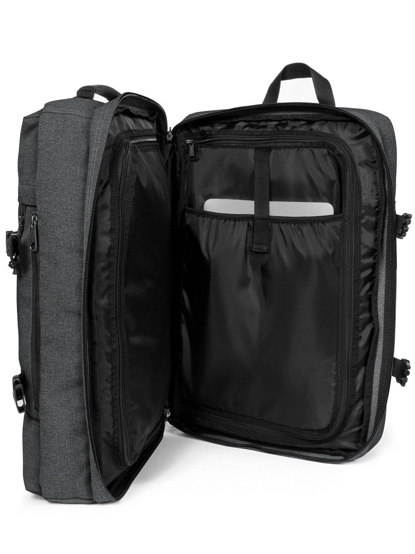 Eastpak vous accompagne lors de vos week-ends en excursion avec ce sac de voyage cabine en polyester. Ce sac de voyage est vraiment pratique grâce à son grand espace de rangement organisé en deux compartiments zippés distincts. Vous trouverez également, à l'intérieur de ce sac Eastpak, un emplacement spécial ordinateur jusqu'à 17 pouces. Equipé de bretelles rembourrés ainsi que de deux anses, vous pourrez choisir de porter ce sac de voyage Eastpak sur le dos ou à la main selon vos envies. Grâce à ses dimensions respectant les normes de bagages cabine, vous pourrez prendre l'avion en compagnie de ce sac de voyage Eastpak.