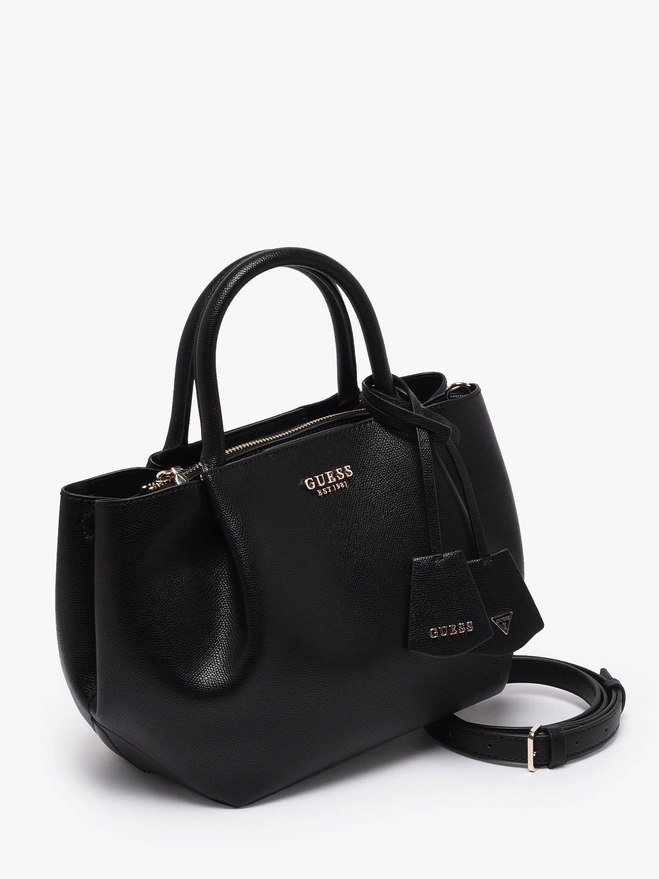 The Guess Amorette handbag combines elegance and practicality in a contemporary coated canvas design. Its durable texture and refined appearance make it an ideal accessory for everyday use. Versatile in design, it can be carried by hand or worn as a crossbody with an adjustable and removable strap, while the 12 cm handle height ensures optimal comfort. The magnetic closure provides quick and secure access to your belongings. Inside, two compartments and a zip pocket allow for organized storage of essentials. Chic and functional, the Amorette bag enhances your outfits with style and modernity, perfectly reflecting Guess’s craftsmanship and signature elegant aesthetic. A refined choice for those seeking both practicality and sophistication.