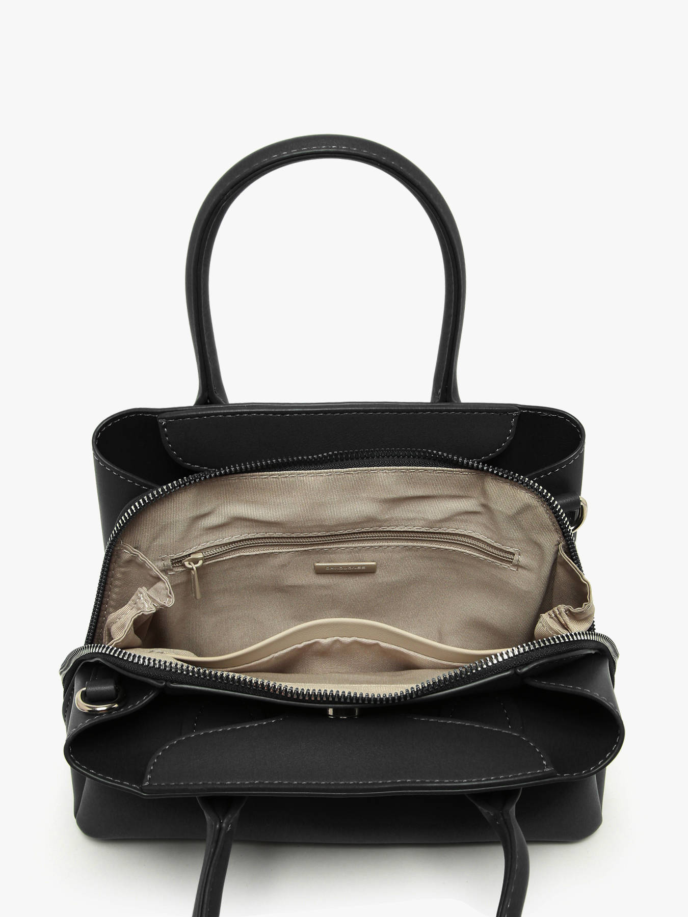 This French David Jones handbag, crafted from durable synthetic material, combines modern elegance, practicality, and versatility. Its combined zip and magnetic closure secures your belongings while adding a contemporary touch to its sleek design. The adjustable, removable shoulder strap and 10.5 cm handle allow for hand or crossbody wear according to your needs. Inside, three compartments, a slip pocket, and a zip pocket provide optimal organization for essentials such as your phone, wallet, and keys. Compact yet spacious, this bag impresses with modern lines, lightweight design, and refined finishes, adding sophistication and style to any outfit. Versatile and functional, it accompanies city days, outings, or appointments, combining comfort, practicality, and chic appeal in an easy-to-carry accessory.