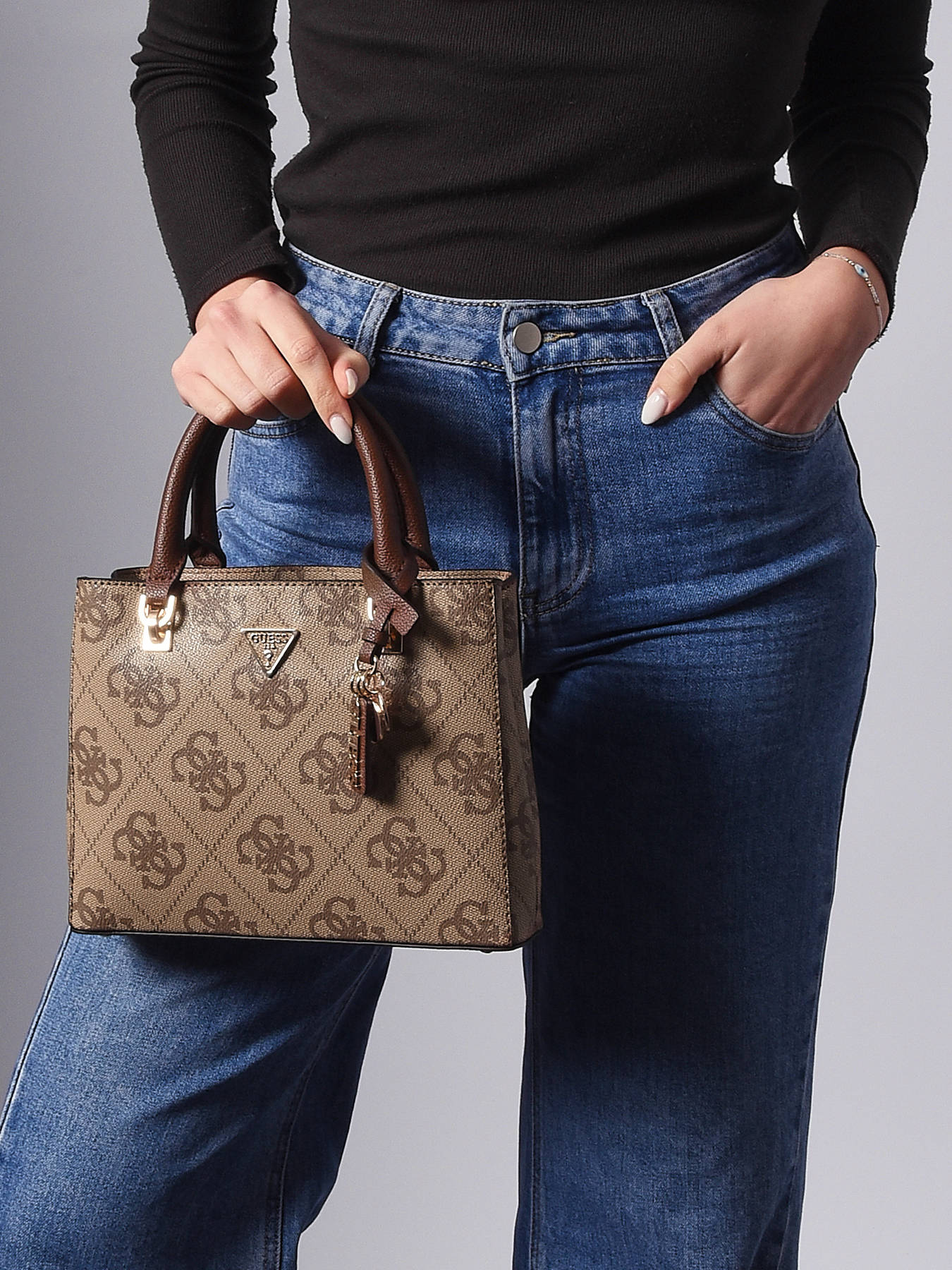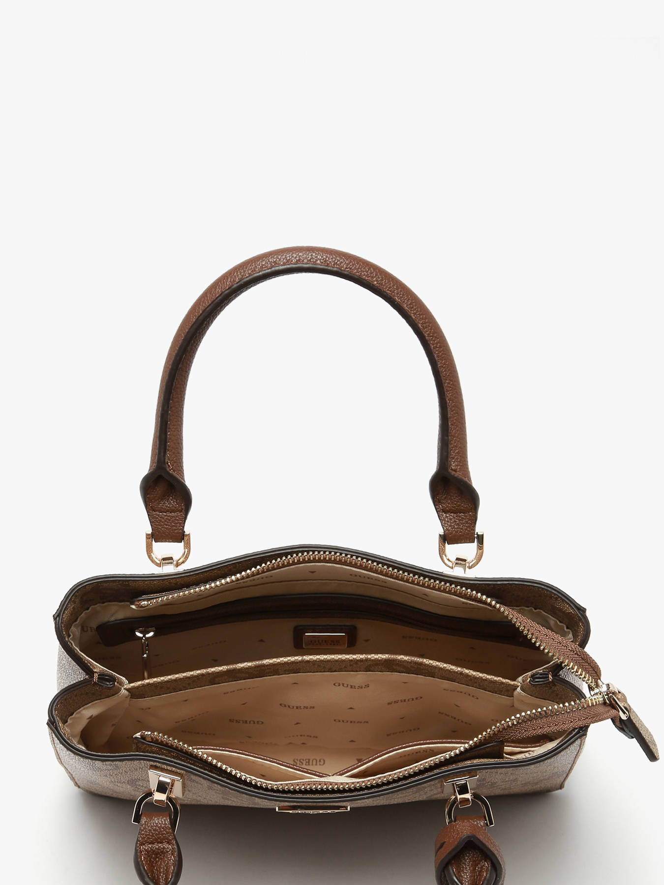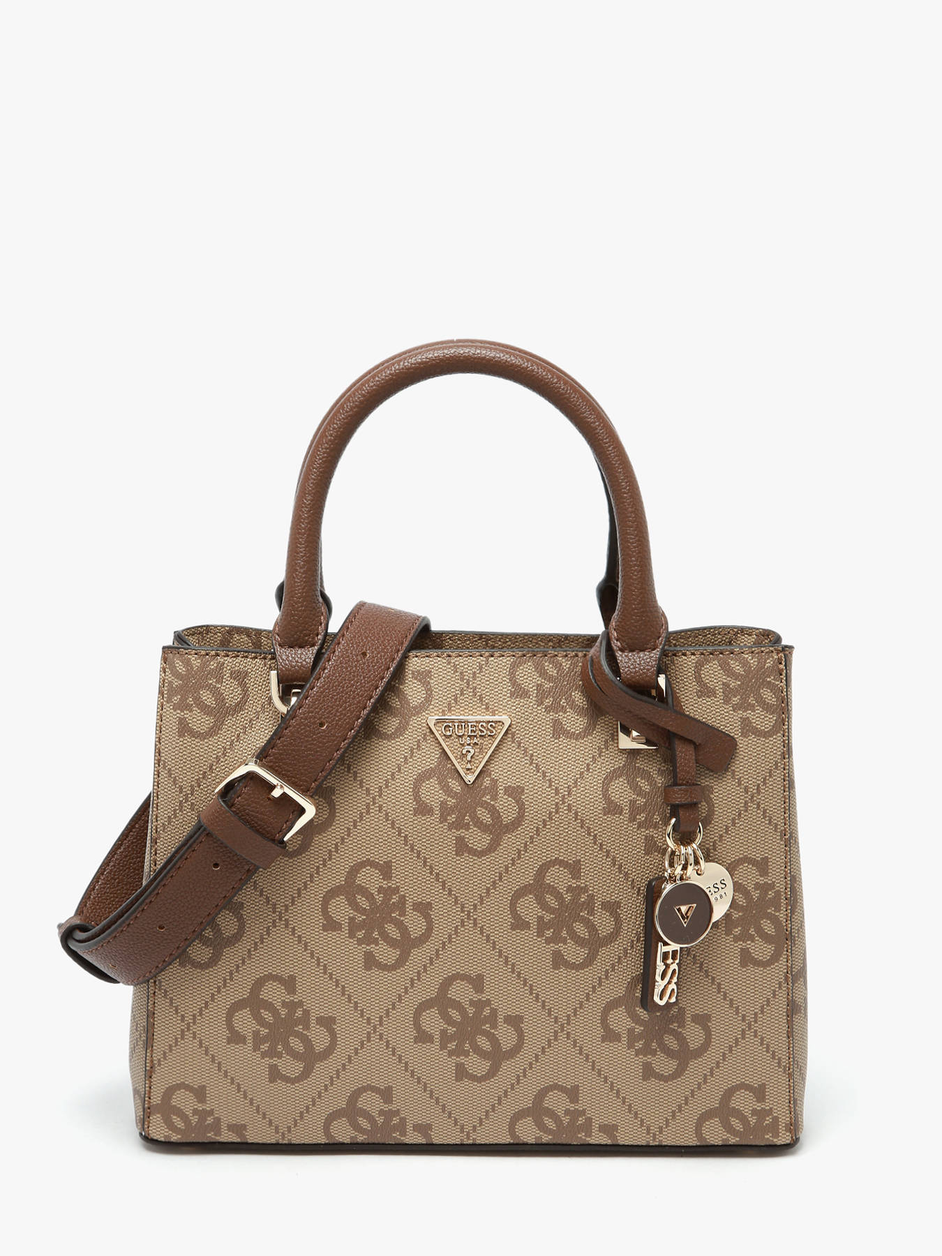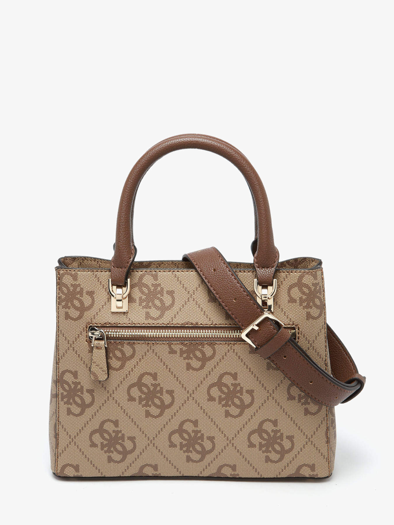 The NOELLE GUESS handbag, made of P.U., combines elegance and functionality for everyday use. The exterior features a secure zip closure and a practical back pocket for quick access to essentials. With a handle height of 10 cm, it can be comfortably carried by hand, while the adjustable and removable strap offers the option to wear it crossbody. Inside, the bag has two separate compartments, along with two simple pockets and one zippered pocket, perfect for organizing your belongings efficiently. The NOELLE GUESS is a versatile bag, ideal for combining style and practicality daily.