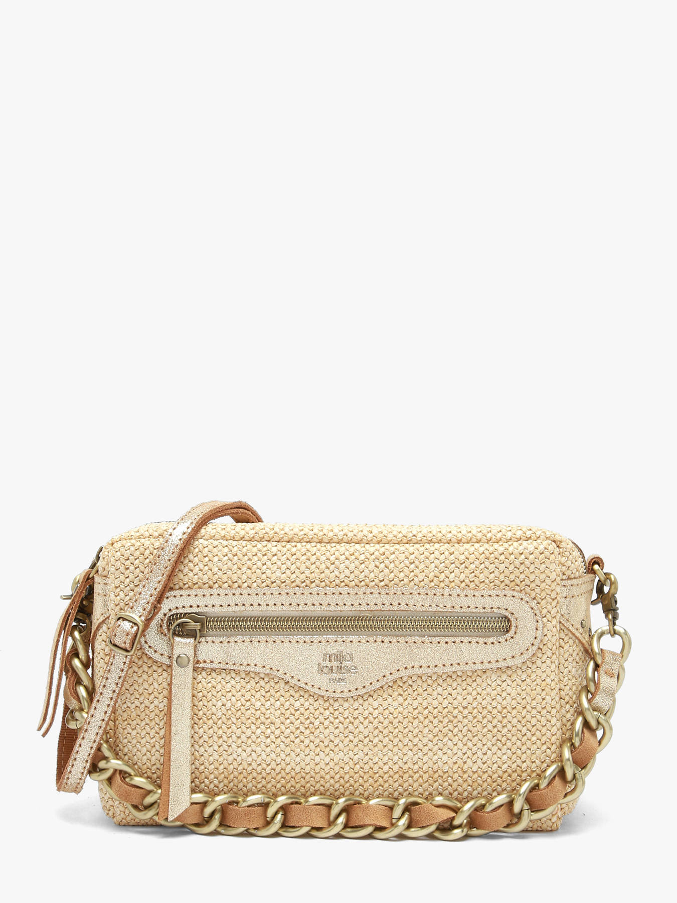 The CM MILA LOUISE crossbody bag, crafted from raffia with leather trim, combines natural elegance and functionality for everyday use. Its exterior features a front pocket and a secure zip closure, providing easy access while protecting your belongings. The adjustable and removable strap allows versatile crossbody wear according to your needs and preferences. Inside, two compartments and two zip pockets offer organized storage for essentials such as a phone, wallet, or small accessories, ensuring practicality and ease of use. Lightweight and refined, this CM MILA LOUISE bag stands out with its sleek design and quality materials, adding a chic and natural touch to your outfits. Perfect for those seeking an elegant, functional bag suitable for any occasion.