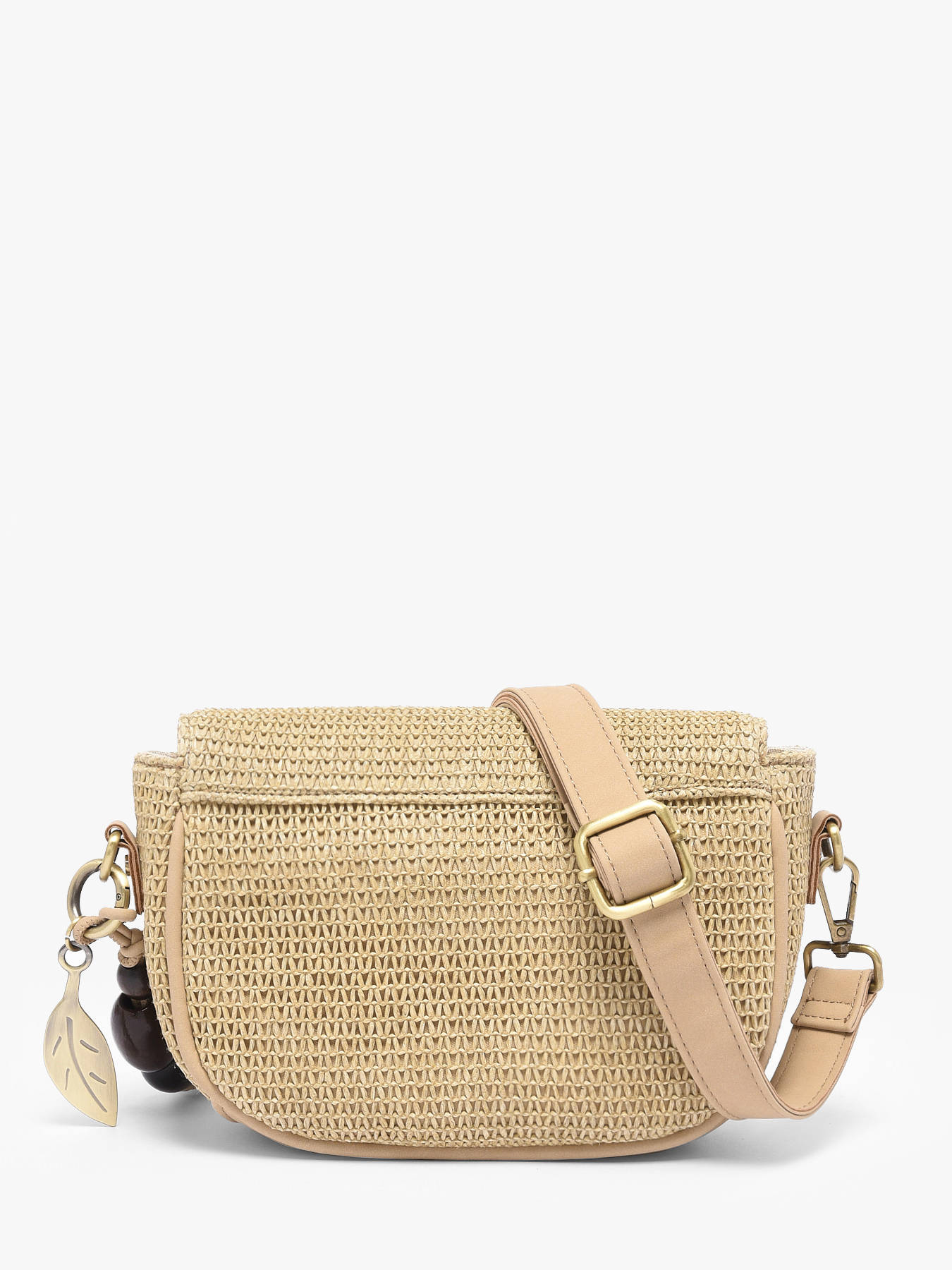 The WOOMEN Crocus Estival crossbody bag combines lightness, functionality, and summery elegance. Its main material, polyethylene trimmed with polyurethane, paired with a cotton and linen lining, ensures durability and comfort for everyday use. This two-tone bag features a flap with a magnetic snap, a zip closure, a versatile polyurethane strap, and a wooden handle, offering multiple practical and stylish carrying options. Inside, a zip pocket and a slip pocket make it easy to organize your essentials. The beaded bag charm, sold with the model, adds a refined, summery touch, making this bag a distinctive and elegant accessory, perfect for complementing all your summer outfits.