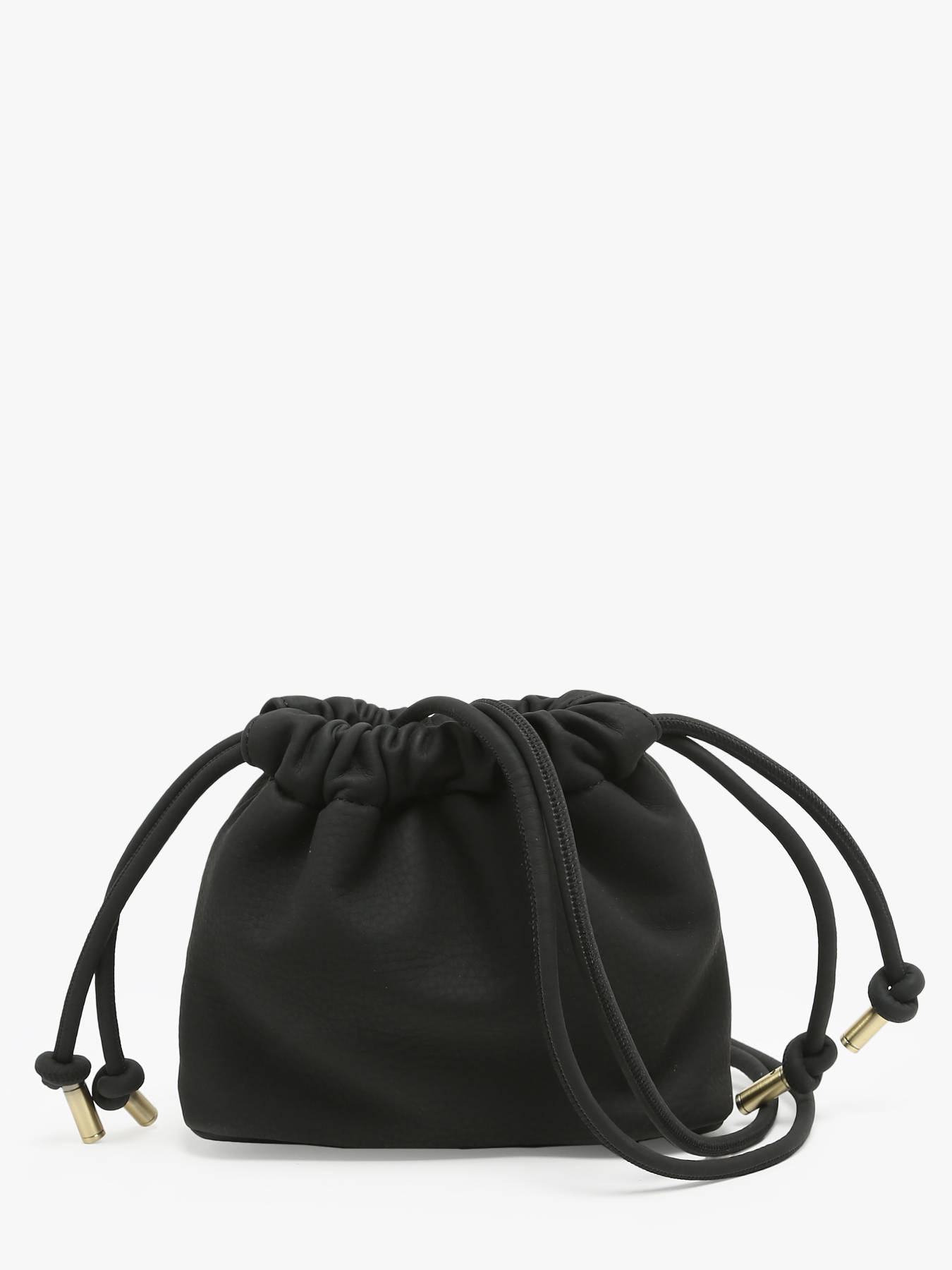 This crossbody bag from WOOMEN's MUSCARI line is made from recycled polyurethane with a grained effect and a peach-skin feel. This small pouch with a puffy design is distinguished by its drawstring detail, allowing you to adjust the bag to your liking. It closes with a magnetic snap and features a zippered pocket and a single compartment inside for practical organization.
