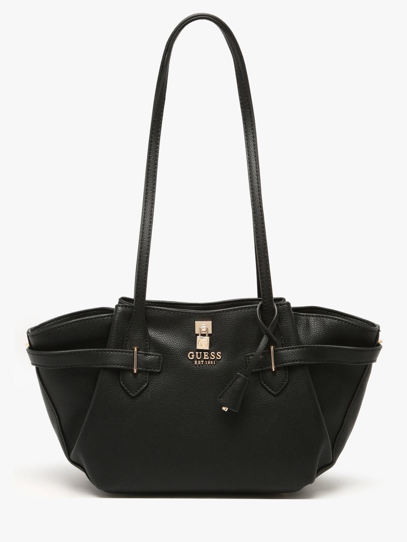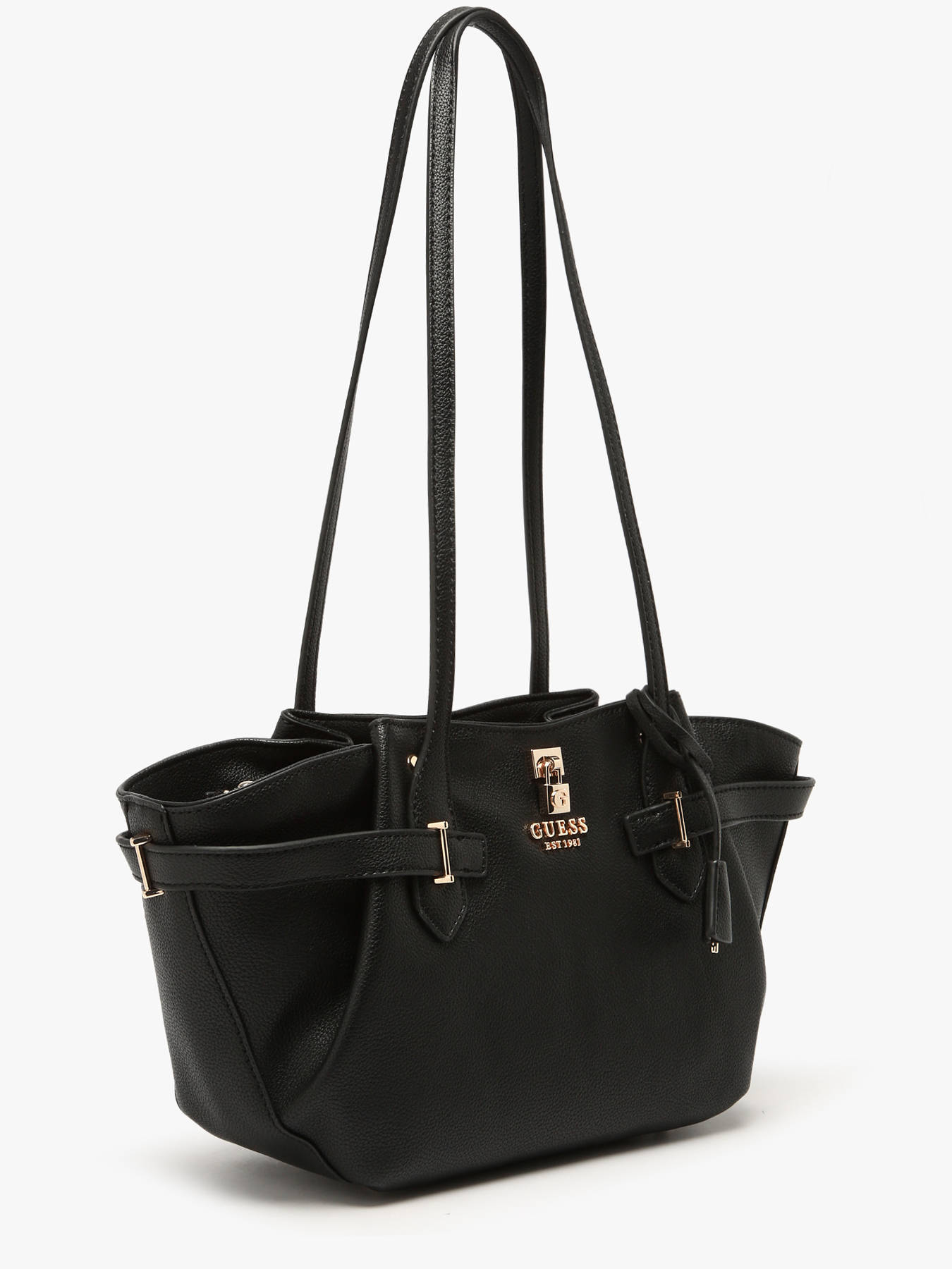 The NOELLE GUESS handbag in P.U. combines modern design and functionality. Its sleek exterior features a secure zip closure, while the 32 cm handle offers comfortable shoulder carrying, perfect for everyday use. Inside, it includes a spacious main compartment complemented by four simple pockets and one zipped pocket, ideal for neatly organizing your essentials. This versatile bag easily matches any outfit, adding a chic and practical touch to your style.