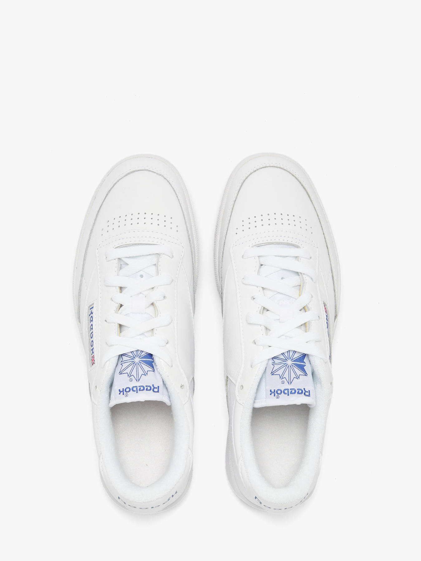 Step into a tennis classic with the Reebok Club C 85 sneakers for men, combining vintage heritage with modern everyday comfort. True to the minimalist aesthetic of the original 1985 model, this sneaker stands the test of time. Its premium leather upper provides soft, comfortable support, enhanced with Blue accents for a refined athletic look. The low-profile silhouette ensures full mobility, while the synthetic midsole delivers optimal comfort throughout the day. The authentic gum rubber outsole adds grip and retro style, making this sneaker a streetwear essential for a polished, versatile look.