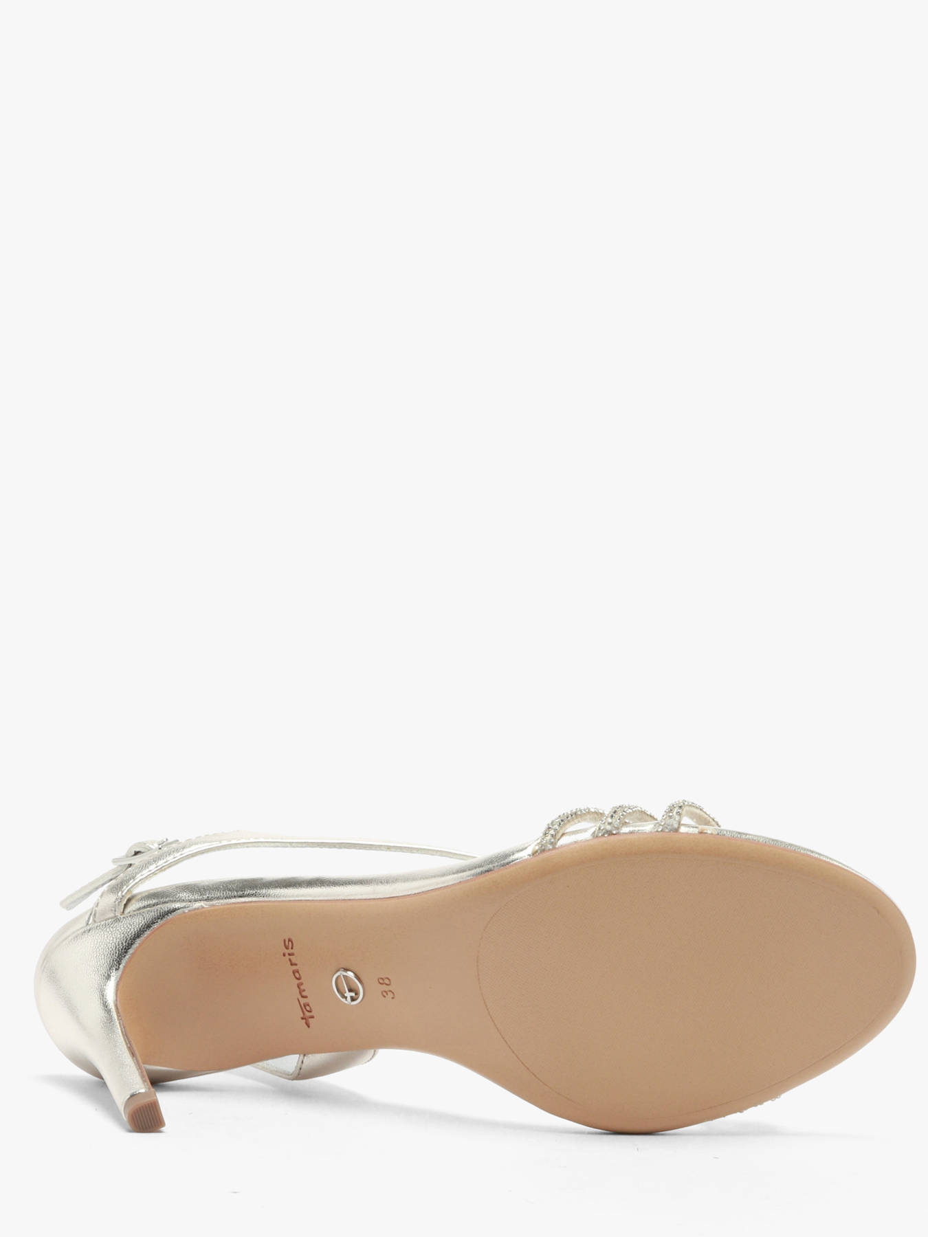 Showcase elegance and femininity with these TAMARIS stiletto heel sandals, perfect for enhancing your evening outfits or dressed-up looks. The 9.5 cm stiletto heel elongates your silhouette while adding sophistication and glamour with every step. Crafted from textile and synthetic materials with an iridescent finish, they subtly catch the light, bringing a refined touch to your ensemble. The textile and synthetic lining and synthetic insole provide comfortable wear and stable support despite the high heel. The practical buckle closure ensures a secure and precise fit for optimal comfort. Versatile and stylish, these TAMARIS sandals pair effortlessly with dresses, skirts, or tailored pants. With their chic and sophisticated design, they become a must-have in any woman’s wardrobe for special occasions, combining elegance, comfort, and fashion-forward appeal.