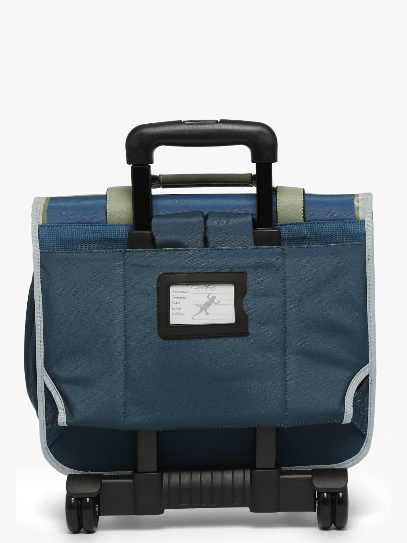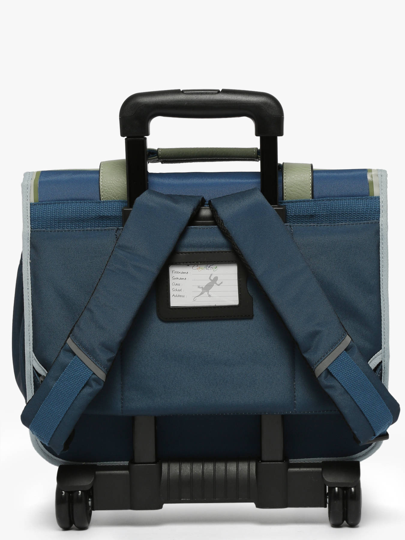 38 cm - 15 liters - 2.33 kg ~ Children's wheeled school bag 38 cm from the Vintage Urban line by Caméléon. Ideal for CP, CE1 and CE2. Composed of 2 compartments separated by a central zipped pocket, this children's satchel is designed to store all school items. It can hold A4 notebooks format. Practical, the interior consists of a zipped pocket, a special ruler space and an elastic for a water bottle. The exterior zipped pocket is ideal for storing small items such as the diary or snacks. To roll the satchel, the shoulder straps must be stored in the pocket on the back. Both reinforced and padded, this satchel provides comfort and resistance. On the security side, it has reflective bands on the front and on the shoulder straps of the satchel. Made from waterproof recycled polyester. Little more, the rule is offered!