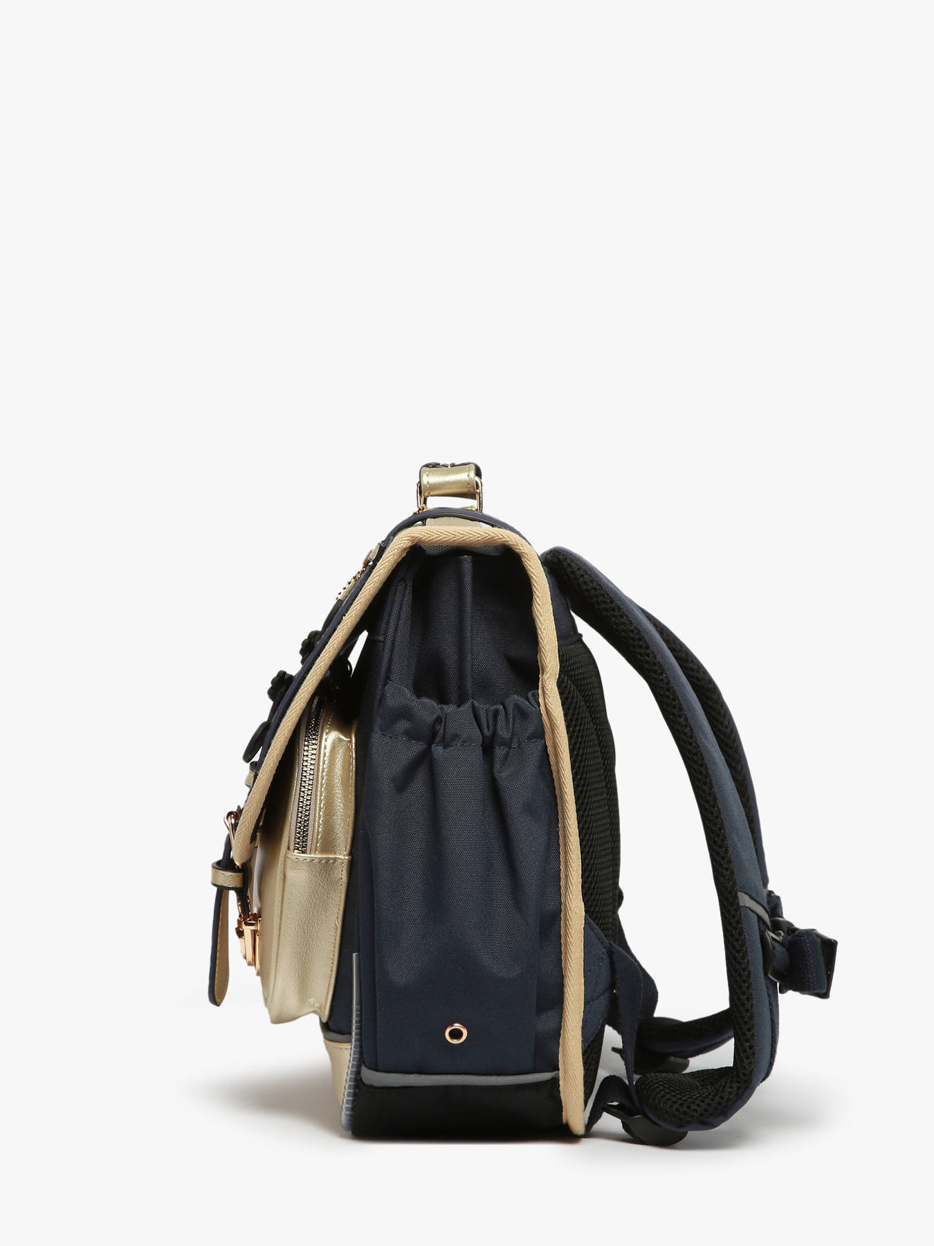 35 cm - 12 liters - 1 kg ~ 14-inch Satchel from the vintage fanstasy collection of the French brand Cameleon, perfect for any child starting primary school! The particularity of this model is its vintage look : finishing touches and the beautiful zipped-pocket on the flap. It has two compartments for notebooks and a little zipped-pocket, as well as a place made on purpose for the ruler. It closes thanks to a flap and two clasps. It also has two little zipped pockets on the front, very useful to take a snack for example. Little plus, a nametag on the back of the satchel allows you to write the name of your child. This model is very comfortable thanks to padded back and shoulder straps. So as to not damage the schoolbooks, the bottom of the satchel is reinforced. For the security of your child, reflective strips have been placed all around on the bag and on the straps.