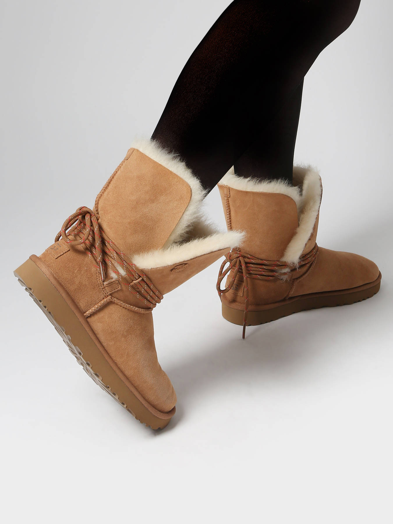 Les bottines BAILEY TIE d’UGG réinventent la célèbre Classic avec une touche d’originalité et de modernité. Leur dessus en cuir finition daim allie robustesse et élégance, tandis que la doublure en cuir et fourrure vous enveloppe de douceur et de chaleur. Leur particularité ? Des lacets arrière que vous pouvez attacher de plusieurs façons : superposés avec un détail contrastant pour un look audacieux, ou grâce à des lacets supplémentaires en satin pour un style plus délicat et féminin. La semelle intérieure en cuir offre un confort optimal, et la semelle extérieure en caoutchouc garantit une excellente adhérence. Polyvalentes et stylées, ces bottines sont parfaites pour allier confort et élégance au quotidien.