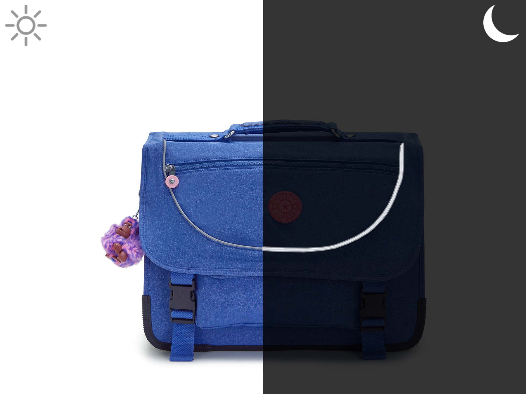 41 cm - 21 litres - 1.16 kg ~ Cartable 2 compartiments de la ligne Back to school signé Kipling. Idéal pour le CM1 et CM2. Grâce à sa belle capacité et ses nombreuses poches simples ou zippées, ce cartable sera parfait pour ranger toutes les affaires scolaires. Il peut contenir du format A4. Pour assurer confort et maintient, le dos et les bretelles sont rembourrés, les angles et fond sont renforcés. Niveau sécurité, des bandes réfléchissantes sont disposées autour du cartable. Petit plus, un protège sac réfléchissant se trouve dans le sac. On craque sur le porte clé assorti au sac !